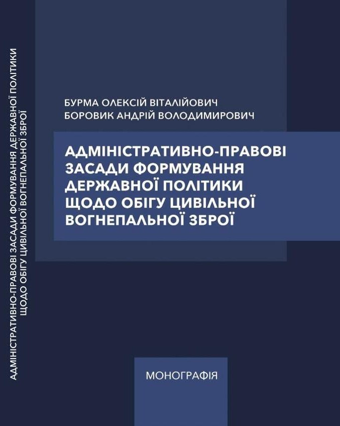 Видавництвом «Юридика» видано монографію «Адміністративно-правові засади формування державної політики щодо обігу цивільної вогнепальної зброї», що рекомендована до друку Вченою радою Інституту.